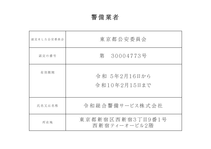 | 社名 | 令和総合警備サービス株式会社 |